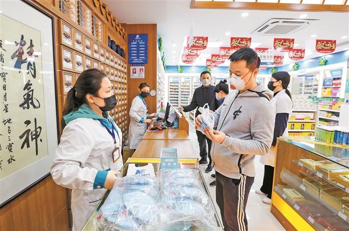 深圳市南北医药有限公司旗下有南北药店、宝华药店和健华药店等品牌药店。从1月中旬开始,平价投放了约300万个口罩给市民。深圳特区报记者 周红声摄
