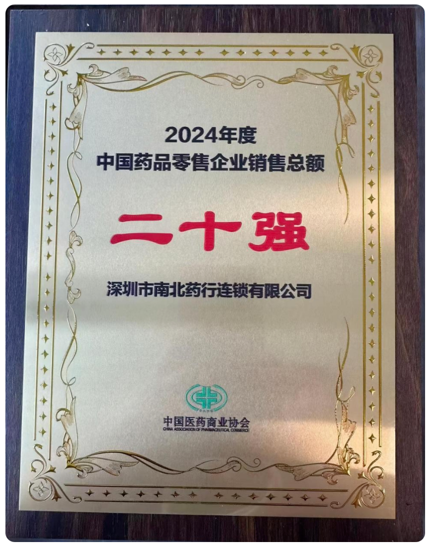 2025 年 8 月 28 日,在由商务部市场运行和消费促进司指导,中国医药商业协会主办的 “2025 药品流通行业信息大会暨医药流通创新大会” 上,备受瞩目的 2024 药品流通行业批发、零售企业百强榜单正式发布。深圳市南北药行连锁有限公司凭借卓越的市场表现和强大的综合实力,成功斩获 “2024 年度中国药品零售企业销售总额二十强” 的荣誉称号。