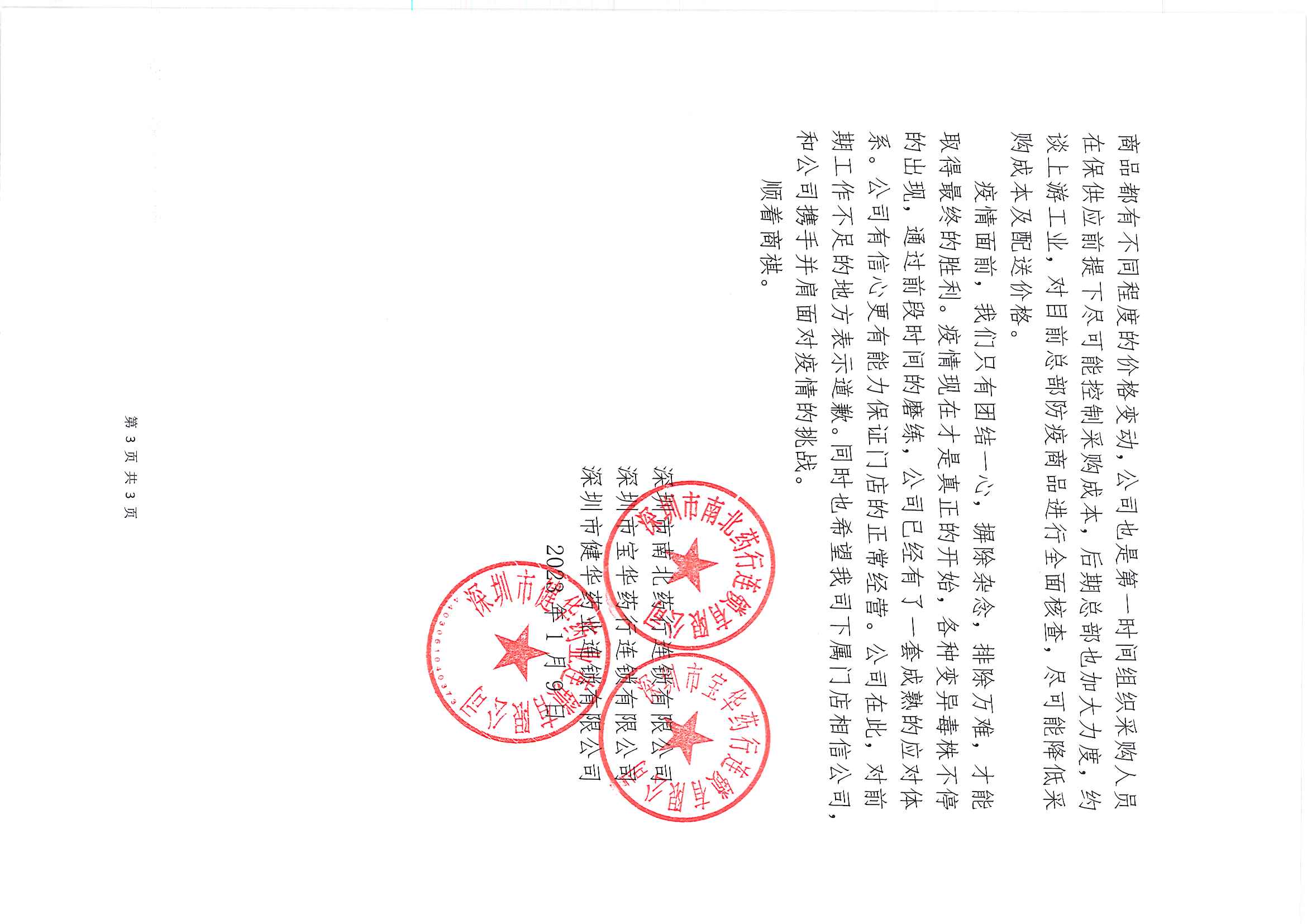 疫情面前,我们只有团结一心,摒除杂念,排除万难,才能取得最终的胜利。疫情现在才是真正的开始,各种变异毒株不停的出现,通过前段时间的磨练,公司已经有了一套成熟的应对体系。公司有信心更有能力保证门店的正常经营。公司在此,对前期工作不足的地方表示道歉。同时也希望我司下属门店相信公司,和公司携手并肩面对疫情的挑战。