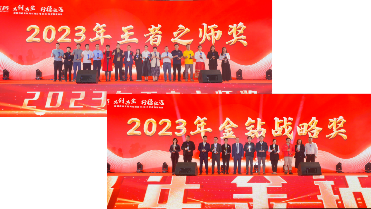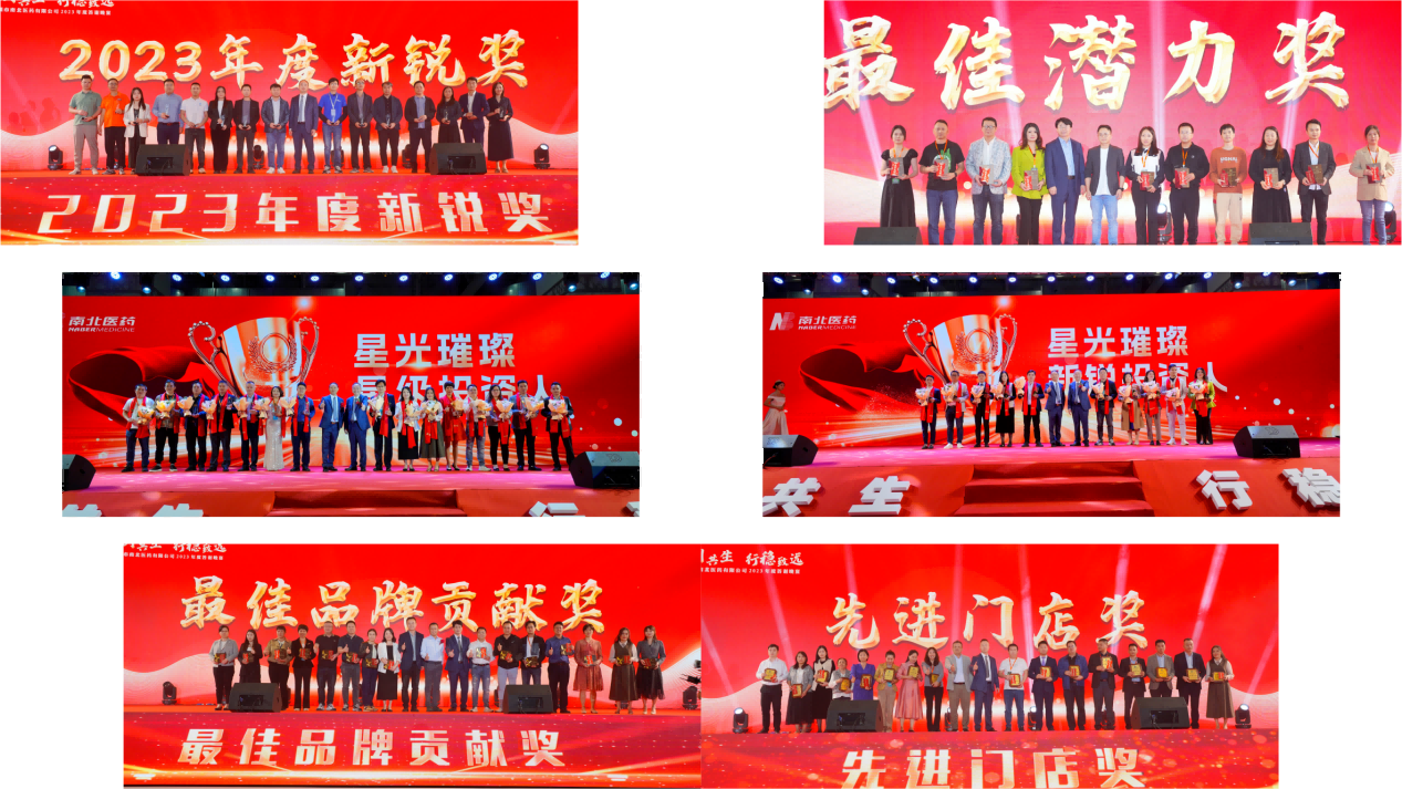 南北医药的发展离不开一群无私奉献的南北人,他们身怀大爱,不遗余力地守护群众健康,向社会展示着南北最佳风采。展销会上这群最美药店人、零售门店负责人走上“星光大道”,接收荣耀表彰。