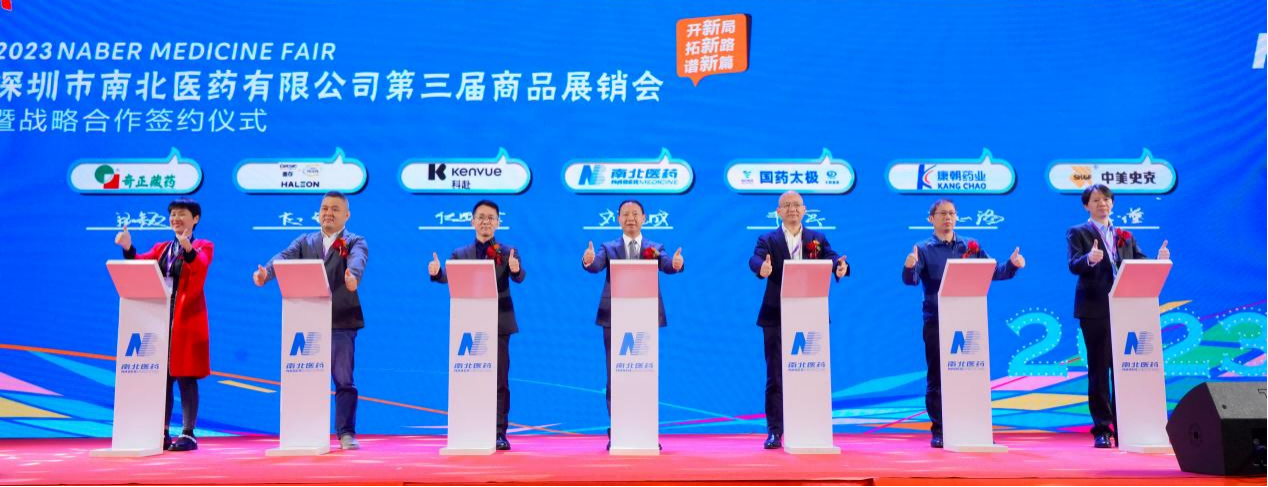本次展销会邀请了华润三九医药股份、石药集团、韩国人参公社、九芝堂、深圳市高和医药、昆明贝泰妮生物科技、康朝药业、重庆太极实业(集团)、科赴中国(Kenvue)、汤臣倍健药业、赫力昂(苏州)制药、广州香雪制药、中美天津史克制药、西藏奇正藏药、博福-益普生(天津)制药等众多医药行业头部企业参加,各位行业大咖一同见证此次展销会的盛大开幕,南北医药董事长张彪先生为本次展销会致开幕词,星光熠熠点燃现场气氛,拉开了盛会的帷幕。